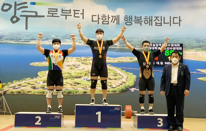 강원도 양구군 용하체육관에서 열린 대회에서 올해 2월 국가대표로 선출된 양지웅 선수가 인상 1위, 용상 2위, 합계 1위를 차지했다.