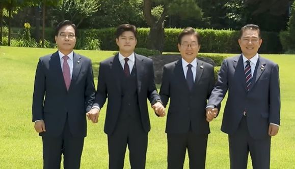 ▲ 이재명 대통령과 여야 지도부의 첫 만남(이재명 대통령 유투브 영상화면 캡춰) |