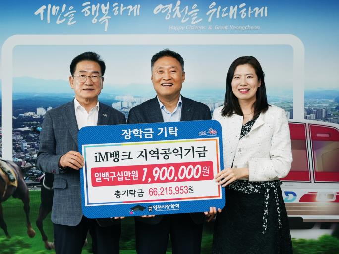 iM뱅크 영천시청지점은 지난 16일, 지역공익기금으로 조성된 190만원을 지역인재 양성을 위해 영천시장학회에 장학금으로 기탁했다.