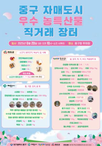 ▲ 대구 중구, 6월 20일 자매도시 농특산물 직거래장터 개최 |