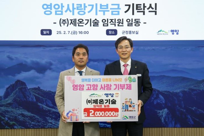 전남 나주의 건설엔지니어링 전문기업 ㈜제온기술 임직원이, 7일 영암군에 고향사랑기부금 200만원을 전달했다.