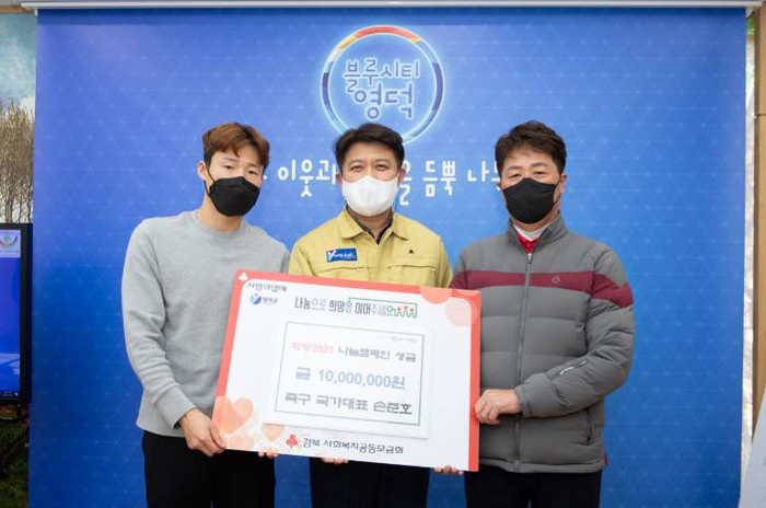 [프레스뉴스] 배영달 기자= 영덕 출신 축구스타 손준호 선수가 지난 18일 영덕군청을 찾아 ‘희망 2021 나눔 캠페인’ 성금 1천만원을 기부 했다.