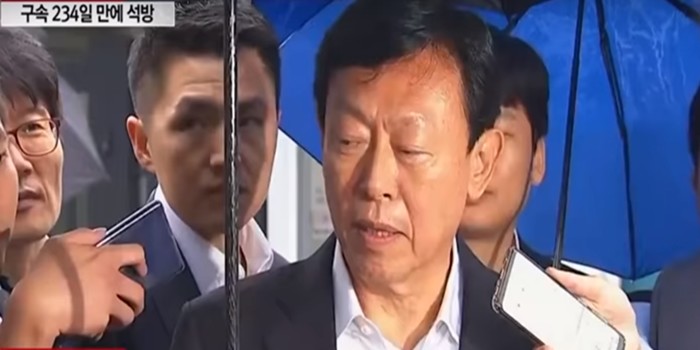 | ▲지난 5일 2심 재판에서 집행유예가 선고되면서 서울 구치소에서 풀려난 후 취재진 앞에 입장을 밝히고 있는 신동빈 롯데그룹 회장. <사진=YTN 뉴스 화면 갈무리> |