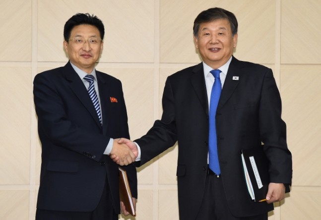 ▲ 악수하는 남북 체육회담 대표의 모습. <사진=인터넷 갈무리> |