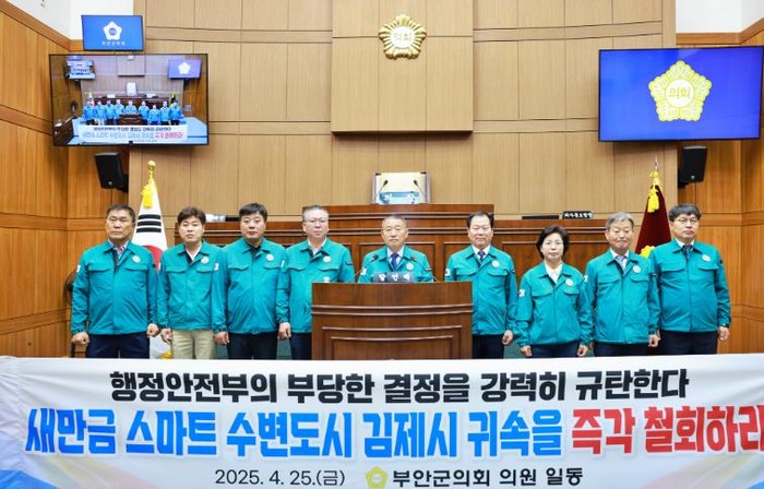 부안군의회는 25일 새만금 스마트 수변도시 관할권과 관련해 공식 성명서를 발표했다.