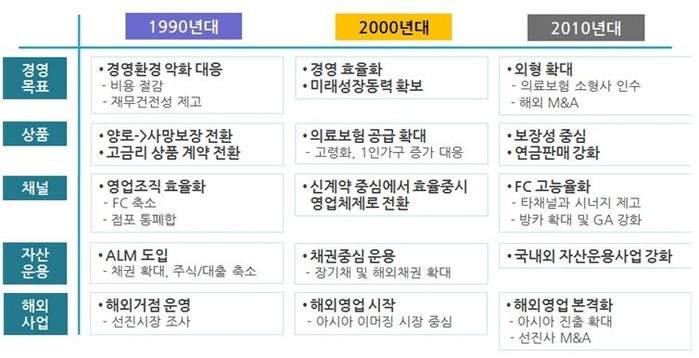 ▲ 일본 다이이치생명의 연도별 영업 전략. <사진=보험연구원 제공> |