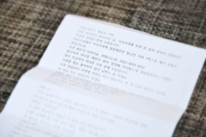 ▲ 청취자가 청송군으로 마음을 담아 보낸 감사펀지