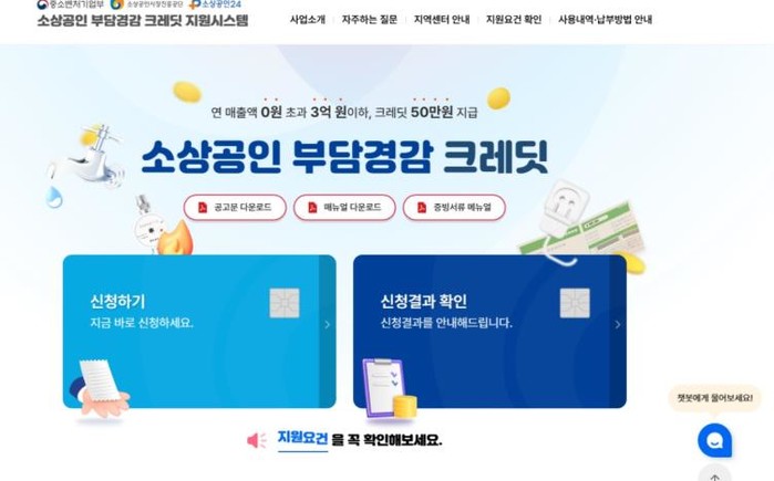 이 사업은 전기·가스·수도요금과 4대 보험료 등 매월 발생하는 고정 공과금 납부에 사용할 수 있는 최대 50만 원 상당의 크레딧(포인트)을 소상공인에게 지원하는 것이 핵심이다.