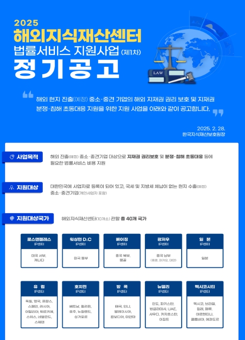 ‘2025년 해외지식재산센터 법률서비스 지원사업’ 신청기업 모집