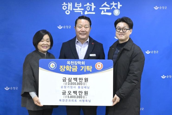 순창군은 지난 4일 순창기업사와 옥천콘크리트가 지역인재 육성을 위해 옥천장학회에 각각 300만원과 500만원의 장학금을 기탁했다고 밝혔다.