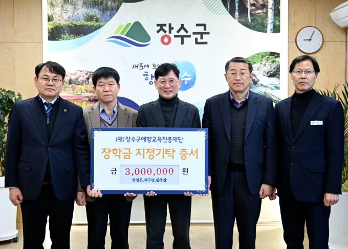 (재)장수군애향교육진흥재단에 따르면 올해 1월 서기관으로 승진한 장수군 공무원들이 장학금 300만원을 기탁했다고 3일 밝혔다.