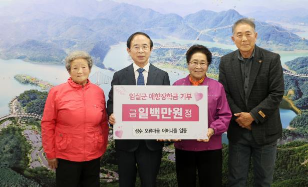성수면 오류마을 어머니들회가 15일 100만원의 장학금을 임실군 애향장학회에 기부했다.