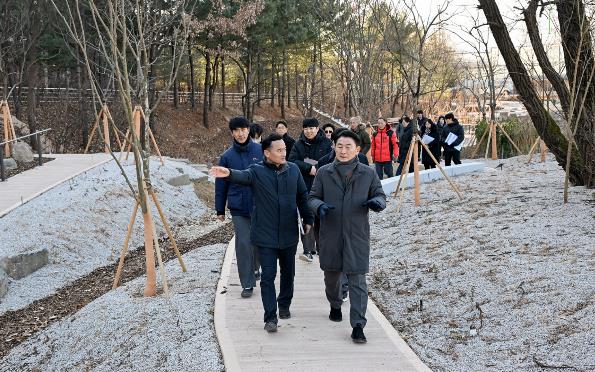 의정부시는 2026년 병오년 새해를 맞아 1월 8일 녹지 인프라 확충을 위한 주요 사업 대상지를 현장 점검했다. 점검 대상지는 ▲장암동 실외정원 ▲용현산업단지 완충녹지 산책로 및 가로숲길 조성 사업지 ▲민락동 감성쉼터 등이다. 이번 점검은 도심 속 쉼터와 실외정원 확충, 안전한 보행환경 조성, 산림 명소 발굴 등 녹지 인프라 조성 사업의 추진 현황을 점검하고, 시민들이 일상에서 녹지 공간을 보다 쉽게 이용할 수 있도록 추진 중인 ‘도시숲 프로젝트’의 사업 방향과 현장 여건을 확인하기 위해 진행됐다.