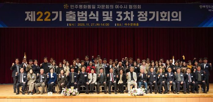 민주평화통일자문회의 여수시협의회는 지난 27일 여수문화홀에서 ‘제22기 민주평화통일자문회의 여수시협의회 출범식 및 3분기 정기회의’를 개최했다.