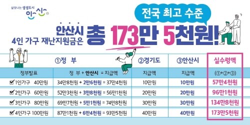 6일 시에 따르면 안산시민은 4인 가구 기준으로 전국 최고 수준인 173만5천원의 재난기본소득을 받을 수 있다.