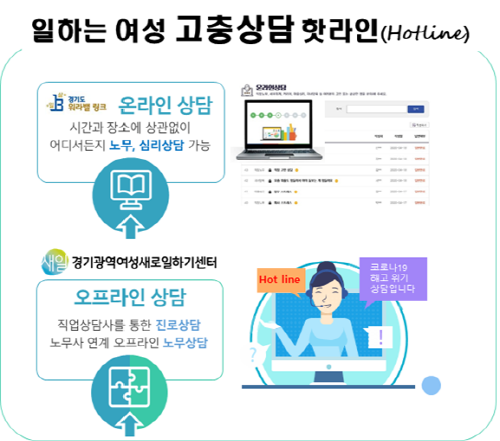 상담이 필요한 여성은 광역새일 핫라인이나 경기도 워라벨 링크를 이용하면 시간과 장소에 관계없이 원하는 시점에 바로 상담을 받을 수 있다.