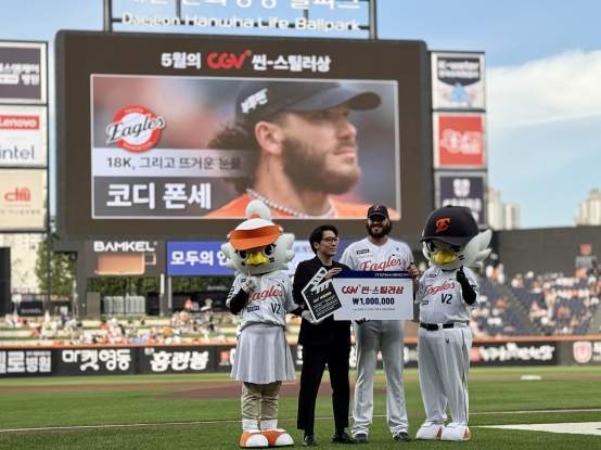 KBO와 CGV가 올해 함께 신설한 ‘월간 CGV 씬-스틸러상’의 5월 수상자로 한화 이글스의 폰세가 선정됐다.