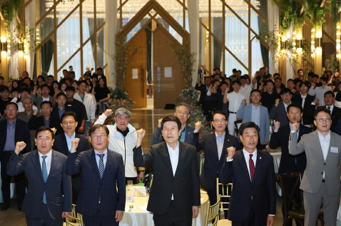 ▲ 제63회 경북도민체전에서 시부 종합우승을 차지한 포항시 선수단이 지난 9일 라메르 웨딩에서 해단식을 열었다. |