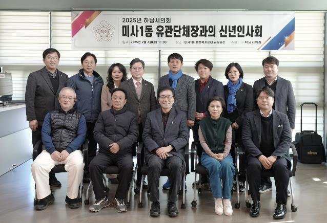 | ▲ 2월 4일 ‘2025년 하남시의회-미사1동 유관단체장과의 신년인사회’ 기념사진. (사진_하남시의회 제공) |