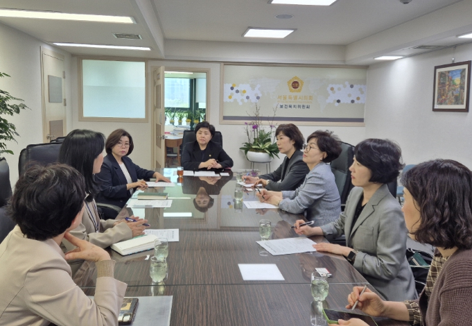 서울특별시의회 보건복지위원회 김영옥 위원장(국민의힘, 광진3)은 4월 29일 오후 4시, 서울시의회 별관 보건복지위원회 회의실(중구 덕수궁길 15)에서 서울특별시 간호사회 임원진과 간담회를 갖고, 영유아 방문건강관리사업의 운영 현황과 개선 방향에 대해 심도 있는 논의를 진행했다.