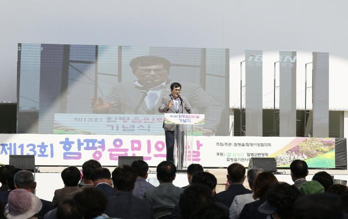 ▲ 1일 제13회 함평읍민의 날, 이상익 함평군수 기념사 모습 |