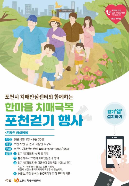 ▲ 포천시 치매안심센터, ‘한마음 치매극복 포천걷기 행사’ 9월 한 달간 개최 |
