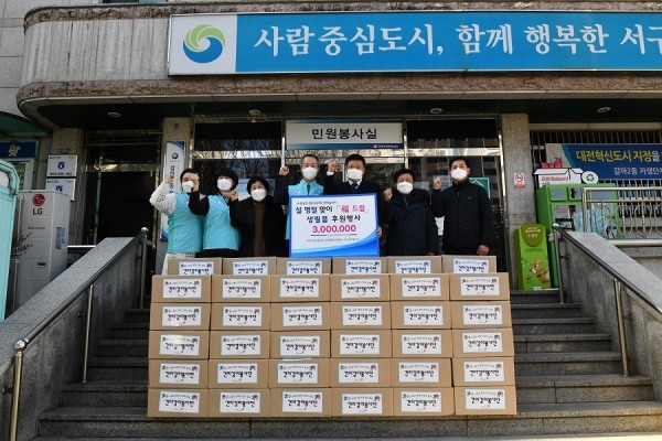 [프레스뉴스] 최정현 기자= 국민건강보험공단 대전충청지역본부는 설 명절을 맞아 9일 대전 서구 갈마2동 행정복지센터에서 지역사회 이웃들이 따뜻한 명절을 보낼 수 있도록 300만원 상당의 생필품을 전달하는 ‘복(福)드림’ 사회공헌활동을 펼쳤다.