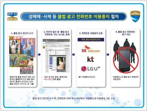 이어 케이티, 에스케이텔레콤, 엘지유플러스 등 통신3사와 별정통신사(알뜰폰) 37개사에서 도의 요청에 따라 차단된 번호의 이용 중지나 해지를 하게 된다. 도는 이를 위해 지난해 지방정부 최초로 이들 통신사들과 불법 광고 전화번호 이용중지를 위한 협약을 맺었다.