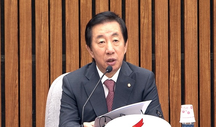 ▲5일 국회에서 열린 자유한국당 원내대책회의에서 발언하고 있는 김성태 한국당 원내대표의 모습. <사진=곽정일 기자> |