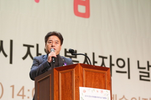 안산시의회 김동규 의장이 지난 11일 안산문화예술의 전당 해돋이 극장에서 열린 ‘제21회 안산시자원봉사자의 날 기념식’에 참석해 지역 자원봉사자들을 격려했다.