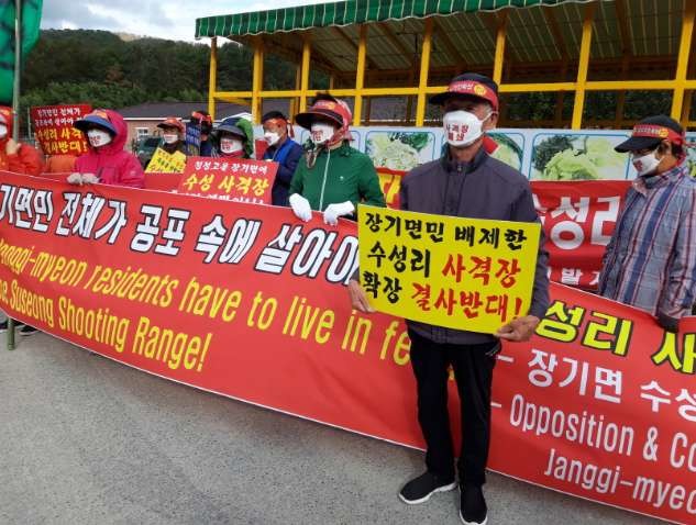 지난 9일, 11일 양일간 포항 수성사격장 입구에서 수성사격장반대위원회와 장기면민 90여명은 주한미군 아파치헬기 사격훈련 전면중지와 수성사격장 완전폐쇄 촉구 항의집회를 열었다.