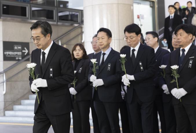 김동연 경기도지사가 31일 김성중 행정1부지사, 고영인 경제부지사, 조선호 소방재난본부장, 주요 실국장들과 수원역에 마련된 제주항공 여객기 사고 희생자 합동분향소를 방문해 희생자들을 추도했다.