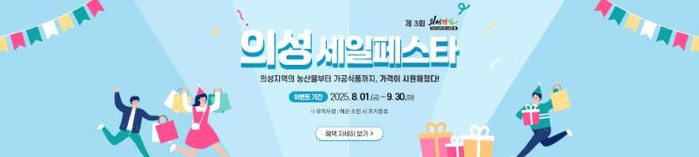 의성군은 오는 8월 1일부터 9월 30일까지 두 달간, 온라인 농특산물 쇼핑몰 ‘의성장날’에서 ‘제3회 의성세일페스타’를 개최한다고 밝혔다.