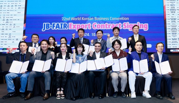 ▲ 전북자치도, 미국 관세 위기 선제 대응 총력(24년 JB-FAIR 수출계약식) |