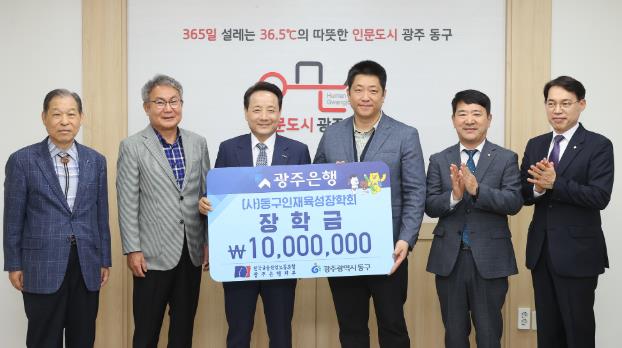 광주 동구는 광주은행노동조합에서 동구인재육성장학회에 장학금 1천만 원을 전달했다고 22일 밝혔다.