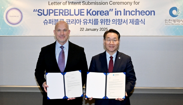 인천광역시는 현지시간으로 22일 미국 워싱턴 하얏트 리젠시 호텔에서 다니엘 돌란(Daniel Dolan) 슈퍼블루 최고경영자(CEO)로부터 마이애미에 기반을 둔 몰입형 전시장인 ‘슈퍼블루 코리아’를 인천에 유치하는 의향서를 전달받았다고 밝혔다.