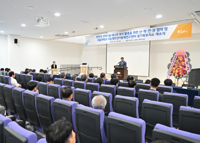 포천시는 지난 4월 30일 포천비즈니스센터에서 서울대학교 지능형무인이동체연구센터 경기북부지소를 개소하고, 자연생태 기반 첨단 과학기술 테스트 부지 활성화를 위한 업무협약(MOU)을 체결했다.