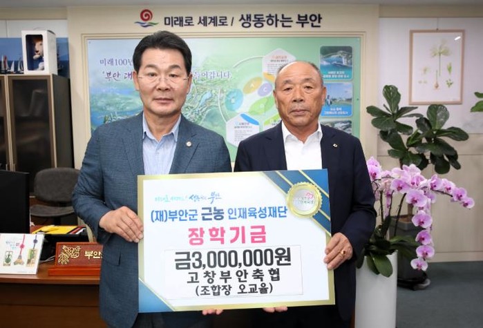 고창부안축협은 지난 22일 부안군 근농인재육성재단을 방문하여 장학금 300만원을 기탁했다.