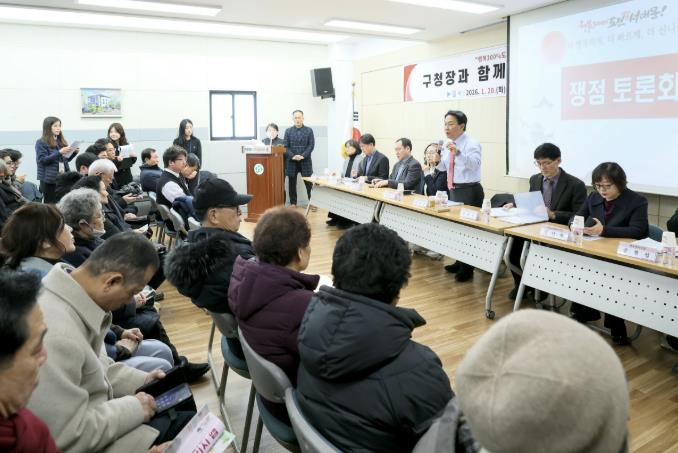 특히 보고 중심에서 벗어나 동별 최대 현안 사업을 주제로 주민들과 ‘쟁점 토론회’를 갖고 실질적 해결을 위해 격의 없이 의견을 나눈다.