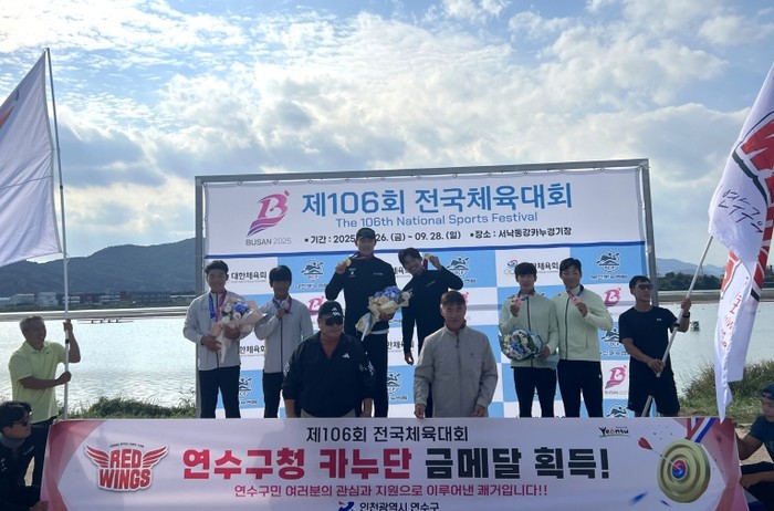 연수구의 직장운동경기부 ‘연수구청 카누단(감독 강진선)이 지난달 26일부터 28일까지 부산 강서구 서낙동강 카누경기장에서 열린 ‘제106회 전국체육대회’에서 금메달 1개, 은메달 3개, 동메달 1개를 획득하며 인천시의 카누 종목 종합 2위 달성에 힘을 보탰다.