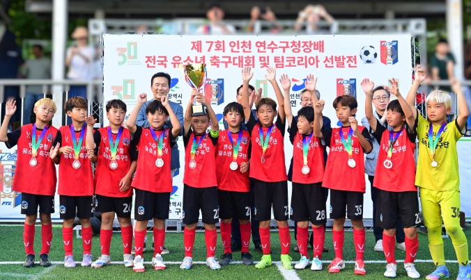 연수구청 유소년축구단이 지난 13일부터 이틀간 용담공원 축구장에서 열린 ‘제7회 연수구청장배 전국 유소년 축구대회’에서 U-10(10세 이하) 부문 준우승을 차지했다.