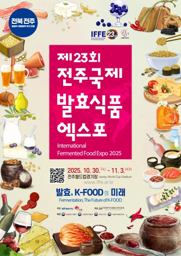 전북특별자치도는 10월 30일부터 11월 3일까지 전주월드컵경기장 일원에서 ‘제23회 전주국제발효식품엑스포’를 개최한다.