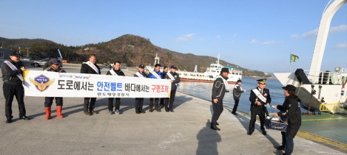 완도해양경찰서(서장 박제수)는 지난 20일 해양안전의 날을 맞아 해남 땅끝 여객선 선착장에서 도서민들에게 구명조끼입기 캠페인을 가졌다고 밝혔다.