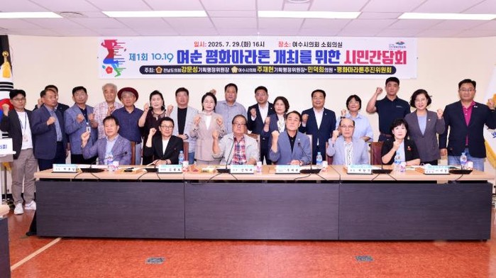 여수시의회는 지난 29일 소회의실에서 ‘제1회 10·19 여순 평화마라톤 개최를 위한 시민간담회’를 열어 대회의 안전·교통 대책·예산 확보 방안을 논의하며 시민 의견을 폭넓게 청취했다.