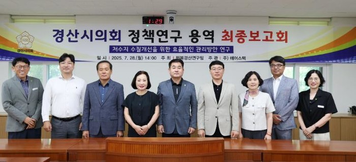 경산시의회 의원연구단체 '행복경산연구팀'은 7월 28일 의회 운영위원회 회의실에서 '저수지 수질개선을 위한 효율적인 관리방안 연구' 최종보고회를 가졌다.