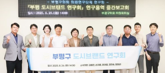 인천 부평구의회 2025년 의원연구단체인 ‘부평 도시브랜드 연구회’가 8월 26일, ‘부평 도시브랜드 이미지 제고를 위한 방안 연구용역’ 중간보고회를 개최했다.