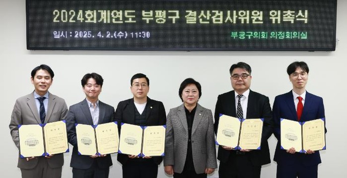 부평구의회는 4월 2일, 2024회계연도 결산검사 위원을 위촉하고 위촉장을 전달했다.