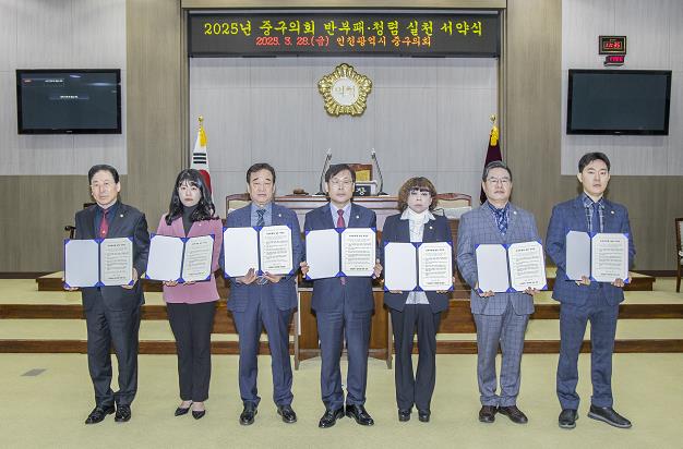 인천광역시 중구의회는 3월 28일 청렴실천 서약식을 개최하여, 공정하고 투명한 의정활동을 통해 신뢰받는 지방의회로 거듭날 것을 다짐했다.