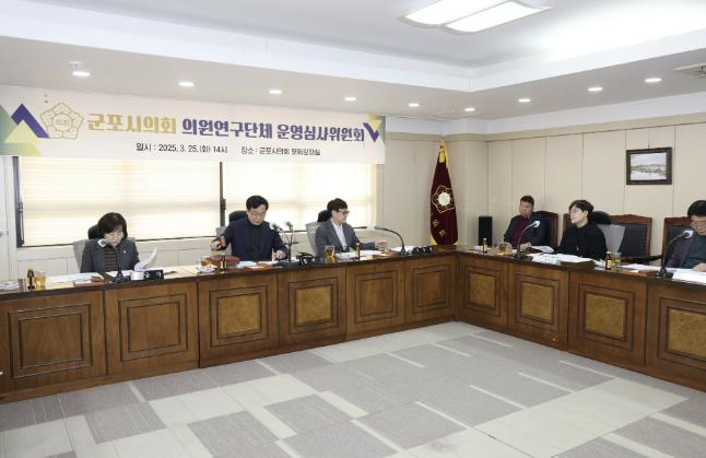 | ▲ 군포시의회는 ‘2025 의원연구단체 운영 심사위원회’를 3월 25일 개최해 연구모임 4건의 운영을 승인했다. |