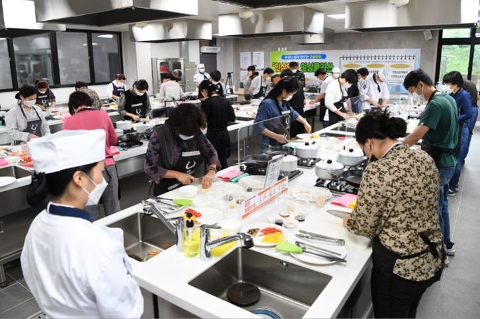 ‘코로나 19’와 관련해 마스크 착용 , 발열체크 , 손소독제 비치 등 사회적 거리두기를 준수하며 진행된 이번 행사는 부모님께 맛있는 요리를 대접하고 싶은 10대 어린이부터 손자 , 손녀와 인삼요리를 함께 나누고 싶은 60대 어르신까지 다양한 연령층이 참가해 한국국제조리고등학교 선생님의 강의에 따라 인삼으로 소통하며 하나 되는 시간을 가졌다 .